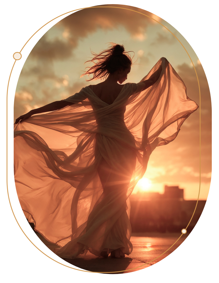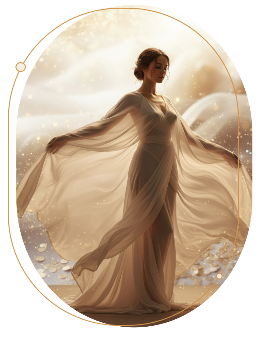 « Je régénère l’être par le mouvement et la fréquence. Je fais descendre la lumière dans le corps avec douceur, puissance et clarté. »